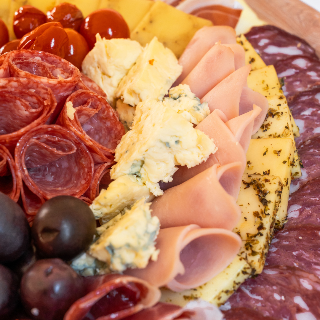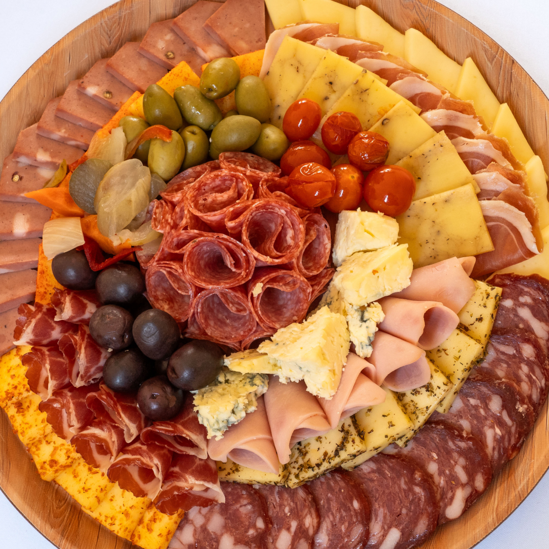 Incluye: Jamón cocido, salame Chacarero, mortadela, bondiola, salame de Milán, queso con ají molido, queso con provenzal, queso con pimentón, queso Roquefort, aceitunas verdes, aceitunas negras, pickles y pan.
